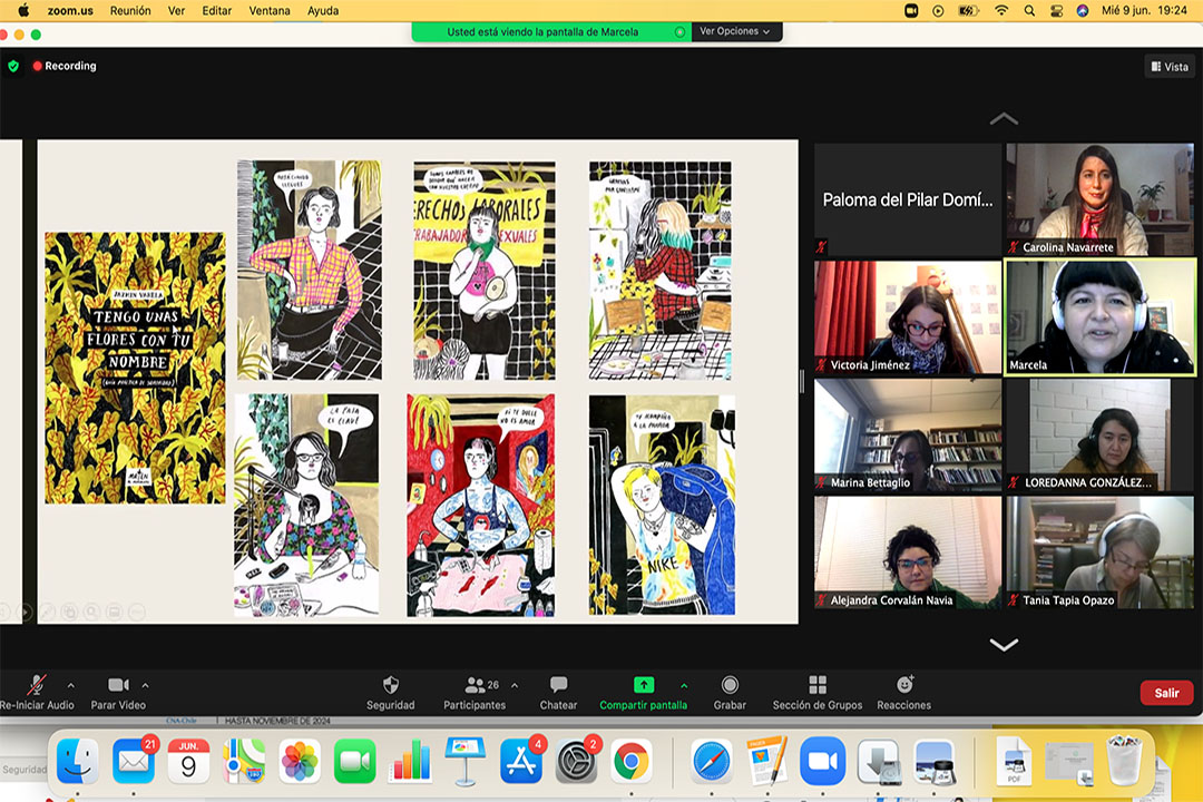Una de ellas, la artista Marcela Trujillo, Maliki fue la expositora a cargo de la sesión correspondiente a la tarde del día miércoles 9 de junio de 2021, entregando a los y las participantes la gran imagen de las mujeres destacadas que, desde el arte del dibujo en sus diversas expresiones, han transitado desde relatos autobiográficos hasta demandas político sociales en torno a la mujer, el feminismo y sobre cómo, desde los trazos, acuarelas, lápiz grafito y/o colores, las temáticas relativas a los derechos, la autodefinición, encuentran en ellos espacios únicos, privados, que cumplen con la definición de privado al momento de abrir y cerrar las tapas de los libros que los contienen.