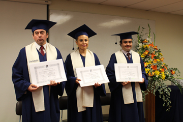 Mónica Arnouil Seguel, José Luis Gálvez Nieto y Braulio Navarro Aburto son los nuevos graduados, quienes ingresaron al programa en marzo de 2012, uniendo distintas trayectorias profesionales y de vida.
