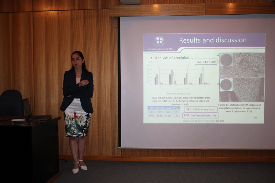 La investigación la realizó en los laboratorios del Departamento de Ingeniería Química, ubicados en BIOREN y, en el marco de un proyecto de Tesis Doctoral en la Industria financiado por CONICYT. “Lo que Carla buscó fue una alternativa biológica que diera respuesta al problema de la industria y que, a la vez, fuera un producto de valor agregado. Así, implementó una precipitación biológica mediante una técnica que utiliza bacterias, lo que dio muy buen resultado”, señaló su profesor guía, Dr. Gustavo Ciudad Bazaul.